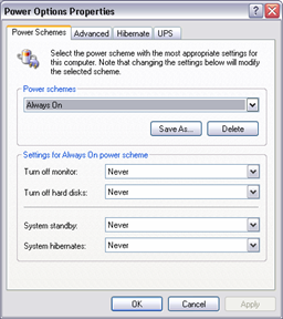 IntroductionMany customers are already familiar with "server environments", that is IT environments where computers need to be running 24 hours a day. This document will be the most valuable for non-IT professionals that are not normally managing Windows servers. The Tempurity System is comprised of two software components - at least one Tempurity Server which collects temperatures and other data from at least one monitored device 24 hours a day through the network, and at least one Tempurity Monitor that communicates with the Tempurity Server and sends alarm notifications. Both of these components must be running constantly in order for the Tempurity System to function properly. They can be running on the same, or different machines. Various events, such as manual restart, power failures, automatic windows updates, and sleep settings can interrupt the ability of your computers to perform needed Tempurity functions. While these temporary outages are common, and if these outages are short they will not seriously affect quality operation of the system, the computer must resume operation seamlessly after "interrupting" events. This can be easily achieved, even in non-server-room environments, however your computer must be configured properly and tested. This document describes the recommended Windows XP Operating System and BIOS configuration options that should be considered for computers running each component, Tempurity Server and Tempurity Monitor. Tempurity Server and Monitor Computer Operating System SettingsIn all versions of the Tempurity Server the system will resume temperature and other data collection automatically after a reboot if the computer is configured correctly as described below. Earlier versions of the Tempurity Monitor ran interactively and did not automatically restart. Later versions, Tempurity Monitor (version 1.6 and later) software automatically resumes the capability of sending alarm notifications after a reboot. Neither Monitor or Server need to be logged into a user account in order to run. Processing is accomplished in the background. The following settings are the most important and should be examined to help ensure that Tempurity Server and Tempurity Monitor computers are always running: Windows Power Settings BIOS Power Settings Windows Automatic Update Settings When Do I Need to Make these ChangesWhile these setting are important for Tempurity Servers, customers that are using Tempurity Monitors to view data only, and not for alarm notification sends, will not need to follow these steps. That is, alarm notification sends can stem from Monitors anywhere on the network. If this function is covered by a PC somewhere else on the network it need not be established permanently on every computer running the Monitor. Windows Power Option SettingsYou will need to adjust the Windows Control Panel Power Options such that the computer starts automatically whenever an interruption such as a power failure occurs. Click Control Panel and then on Power Options. Set the power options on your Tempurity Server as follows: This "Power Always On" setting is required for Tempurity Servers and for Tempurity Monitors. BIOS Power SettingsSome Windows computers must be set to automatically reboot when the power is restored after a power failure. This is accomplished using the PC's BIOS. Most computers have BIOS settings that will allow you to reboot automatically after a power restore however the commands to enter the BIOS are different among types of computers. Check your owners manual or check online for the procedures needed to configure this option on your specific computer. Testing for Correct Resumption of Operation after a Power FailureAfter the above have been set, try simply unplugging the power cable from your PC. Then plug it back in. If the PC reboots and the Tempurity Server or Tempurity Monitor have started as expected, your PC is configured correctly. The PC need not be logged into an account for the Tempurity Software to be running. As long as the computer is powered on, Tempurity Software is running in the background. If the power is restored and the computer does not reboot, check the BIOS and Windows settings as indicated above and try again. To verify Tempurity Server function, use a Tempurity Monitor from another computer and verify that the data is being collected. You'll need to wait several minutes for data to be acquired. To verify Tempurity Monitor function, disconnect one of the NTMS units from the network, and verify that alarm notifications are received as expected. You will need to wait for a period longer than the communication alarm threshold for this device, and have an active alarm group that is watching this monitored device. Alarm Notifications are Sent for Active Alarms when the Tempurity Monitor RestartsWhen the Tempurity Monitor is restarted for any reason, alarm notifications are sent for any alarms that are outstanding at the time of the restart. This is true whether or not these notifications were sent previously. This is because the Monitor can't tell if those alarms were generated during the period when it was not active. This is a way for the Tempurity Monitor to "err on the side of safety" by sometimes sending alarm notifications more than once. Windows Automatic Update SettingsWindows can be set to automatically update the operating system whenever new software is released by Microsoft. When an update is obtained, depending on your automatic update settings, the computer may be rebooted. This reboot can cause a temporary pause in the ability to of a Tempurity Server to collect temperatures (usually a minute or less). More significantly a reboot may expose conditions that may pause the automatic resumption of processing by the operating system. Networked Robotics recommends that the Windows Automatics Update option for computers running Tempurity System components should be “Download updates for me, but let me choose when to install 